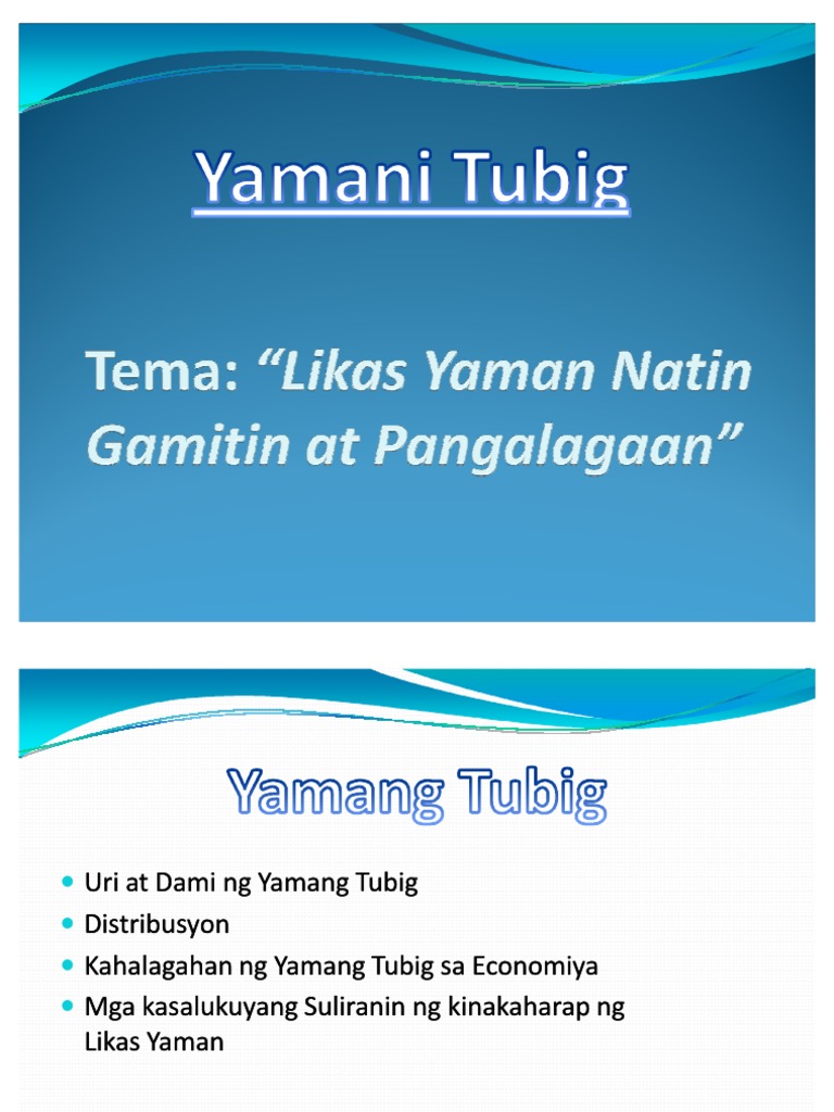 Dahil rin sa hindi wastong paggamit ng mga yamang ito itoy naka pagdudulot rin ng polusyon sa hangin lupa at tubig na nakakaaepkto sa kalusugan ng mga tao. Ay ang mga produktong nkukuha mula sa lupa. Ano ang yamang lupa at yamang tubig.